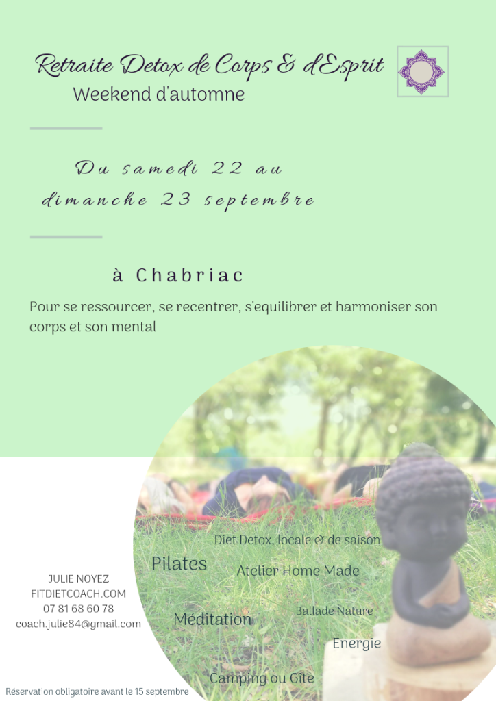Chers lecteurs, Suite au succès et aux bienfaits de notre premier weekend, j’ai le plaisir de vous annoncer que nous remettons çà pour l’automne! Avec des nouveautés évidemment! Pour une …